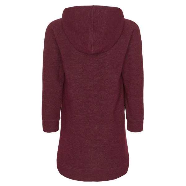 Das Kalajoki Hooded Dress fällt in die Kategorie Strickfleece; die äußere Struktur unterscheidet sich aber optisch von normalem Strickfleece und hat durch den Woll-Anteil einen etwas festeren Griff.